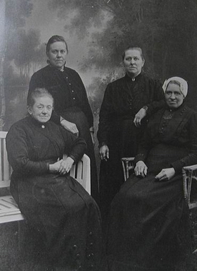 v.l.n.r. Adriaantje Vermeer-Verhoeff, Maartje Klapwijk-Verhoeff (moeder van Jannetje Klapwijk), Jannetje van der Spek-Verhoeff (Jannetje Klapwijk werd naar haar vernoemd), Johanna Hoogendam-Verhoeff