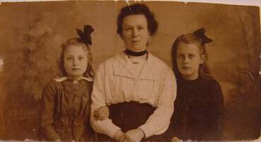 Lucia Maria de Geus met Gre (rechts) en Nel (links) omstreeks 19??